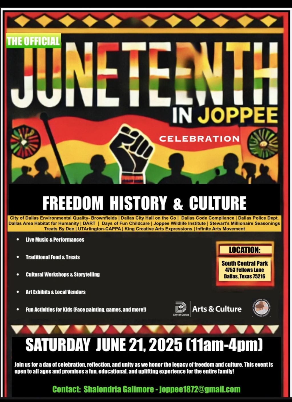 Our foundation will be joining forces with the City of Dallas Arts and Culture and the Joppa community for a day of celebration, reflection, and unity, commemorating Juneteenth, and Texas's enduring legacy of freedom.